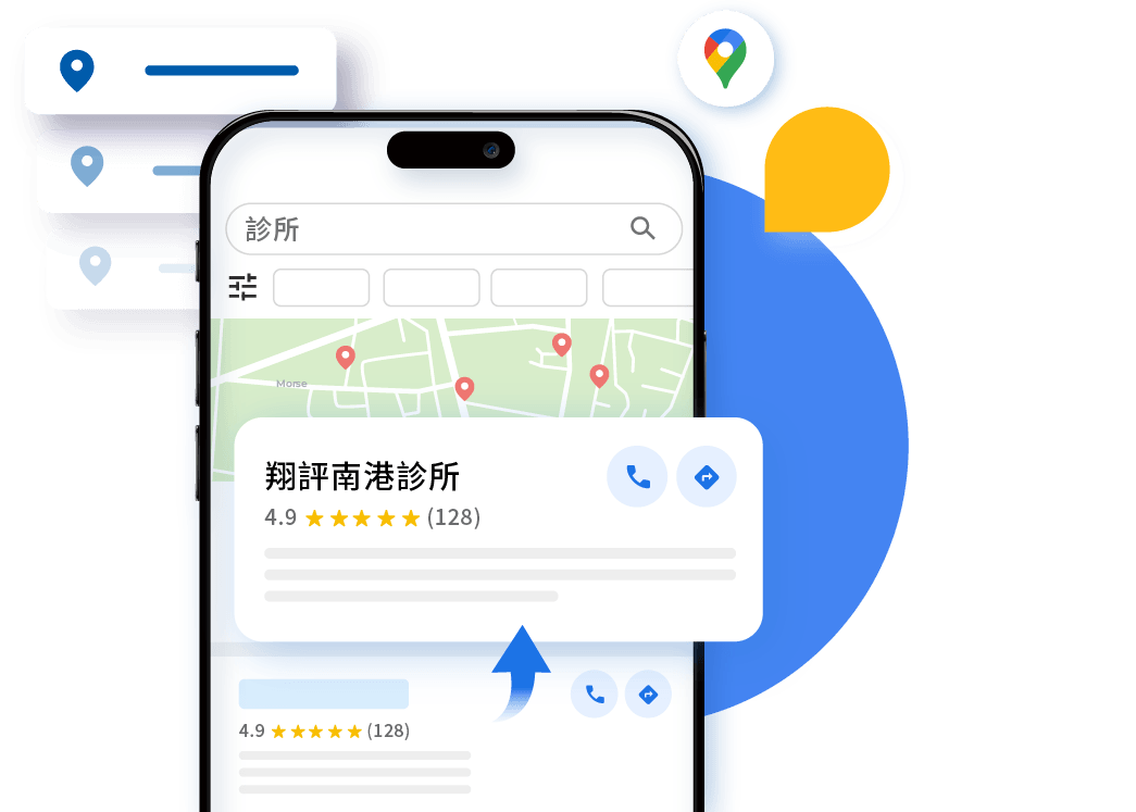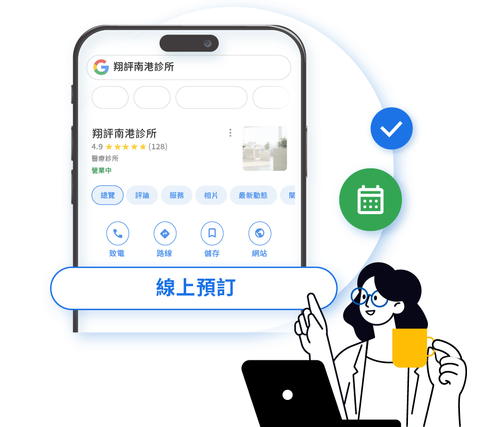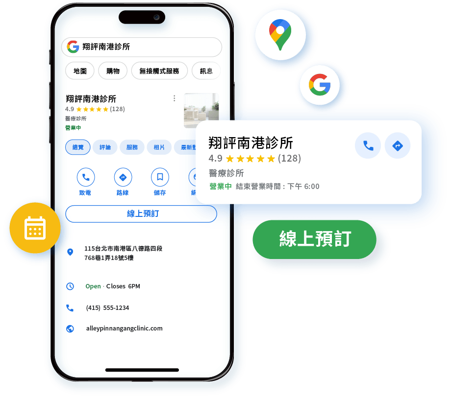 享有全球最大的搜尋曝光量,輕鬆接收從 Google 搜尋、Google 地圖而來的預約掛號!