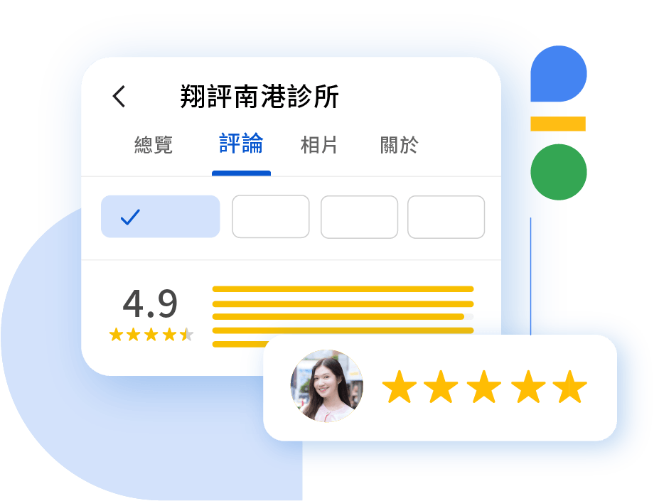 門診及療程資訊完整,再加上用心累積的 Google 好評,馬上就能提升潛在患者的心佔率,讓潛在病患對您的診所留下深刻好印象,也有利於讓搜尋排序更往前。